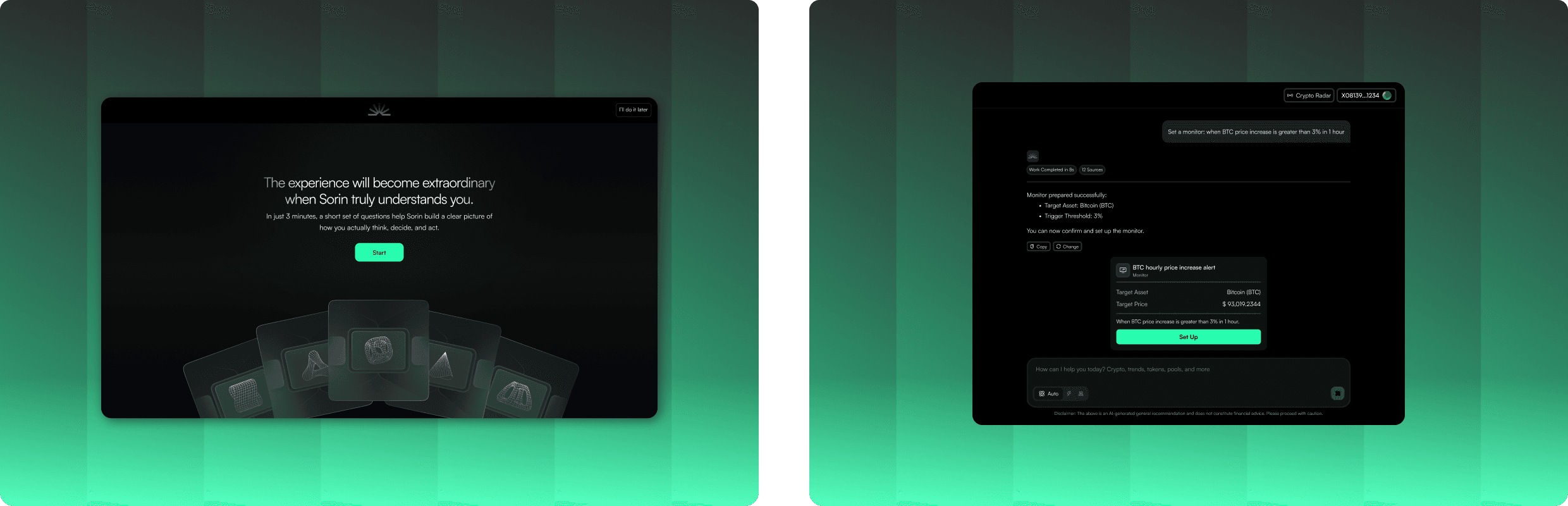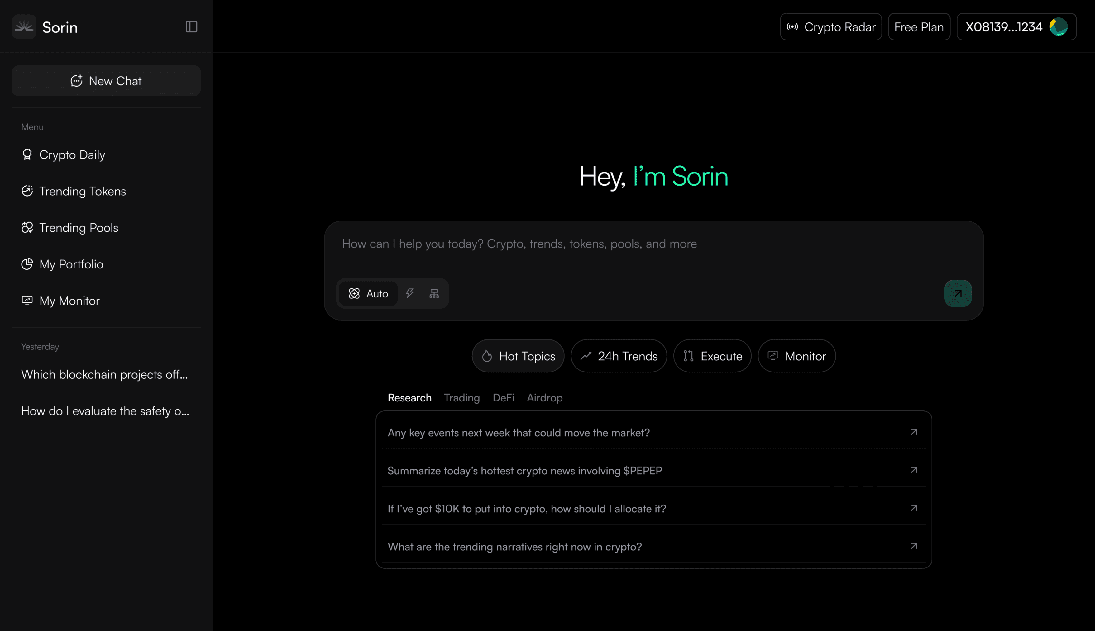 Sorin brings together intelligence, personalization, and execution all in one interface built for real-time crypto markets.