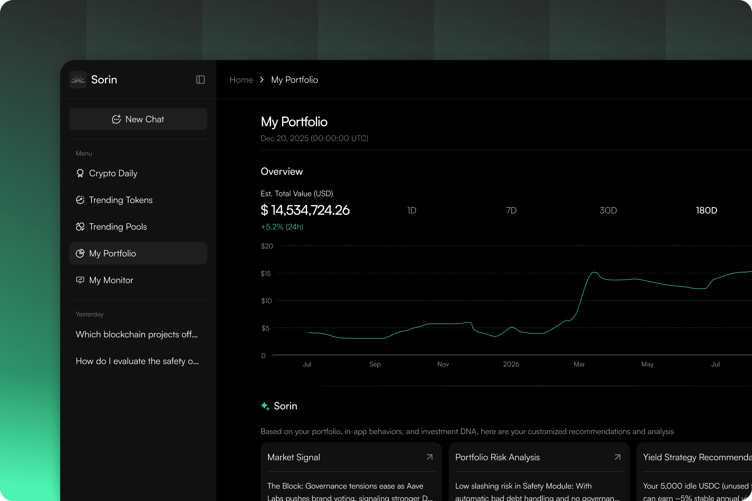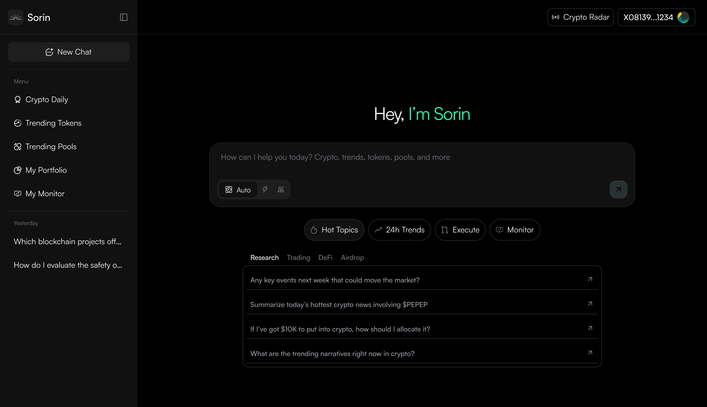 Sorin is your personal market intelligence and crypto copilot.